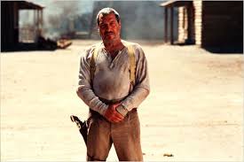 La cinta la he revisionado por varios motivos, uno es que se cumple el 50 aniversario este año del estreno de “Por un puñado de dólares” de Sergio leone, la que se considera fue la cinta que supuso el pistoletazo de salida para el boom del spagueti-western, no fue el primero rodado en Tabernas, pero si el que tuvo distribución internacional, además con tremendo éxito, también acaba de ser el Festival del Western celebrado en Almería, por ello he visitado el “Fort Bravo”, donde se filmó “800 balas”, por ello la he vuelto a ver. Además de este poblado-decorado hay dos más por la zona de este desierto, otro llamado Western Leone y otro Oasis, donde además del poblado hay un parque zoológico, todos ellos lugares en decadencia que se mantienen más por las subvenciones derivados de motivos nostálgicos que por lo que recaudan, y es que encima los precios por los espectáculos son para mí abusivos, 17 euros, teniendo en cuenta que son lugares de complicado acceso. A de la Iglesia en vez del muy ajado argumento de que unos poderosos los quieren demoler, podría haber ideado una “Guerra” entre poblados con los diferentes grupos de residentes. Como curiosidad Álex de la Iglesia intentó que Clint Eastwood apareciera en el final como colofón-homenaje al spagueti-western, pero fracasó, no llegando a hablar tan siquiera con él, lo sustituyó por un pegote, puso a un tipo larguirucho y delgado al que oscureció el rostro y puso la voz de Constantino Romero (actor que lo doblaba habitualmente), quedando una cosa estridente y muy forzada.