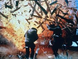 al lado del otro disparando, y la imagen se congela, oímos que les disparan