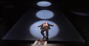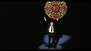 con gabardina y pelo mojado enardeciendo a la audiencia con el grito Icónico “"Me estoy volviendo loco y no voy a soportarlo más". Robert